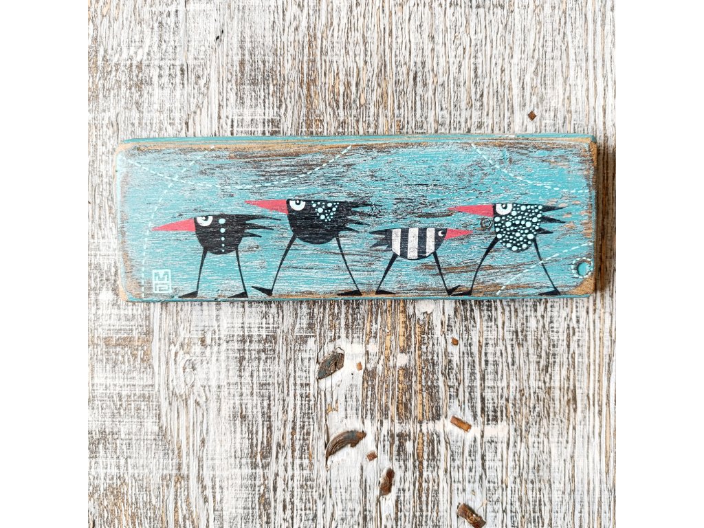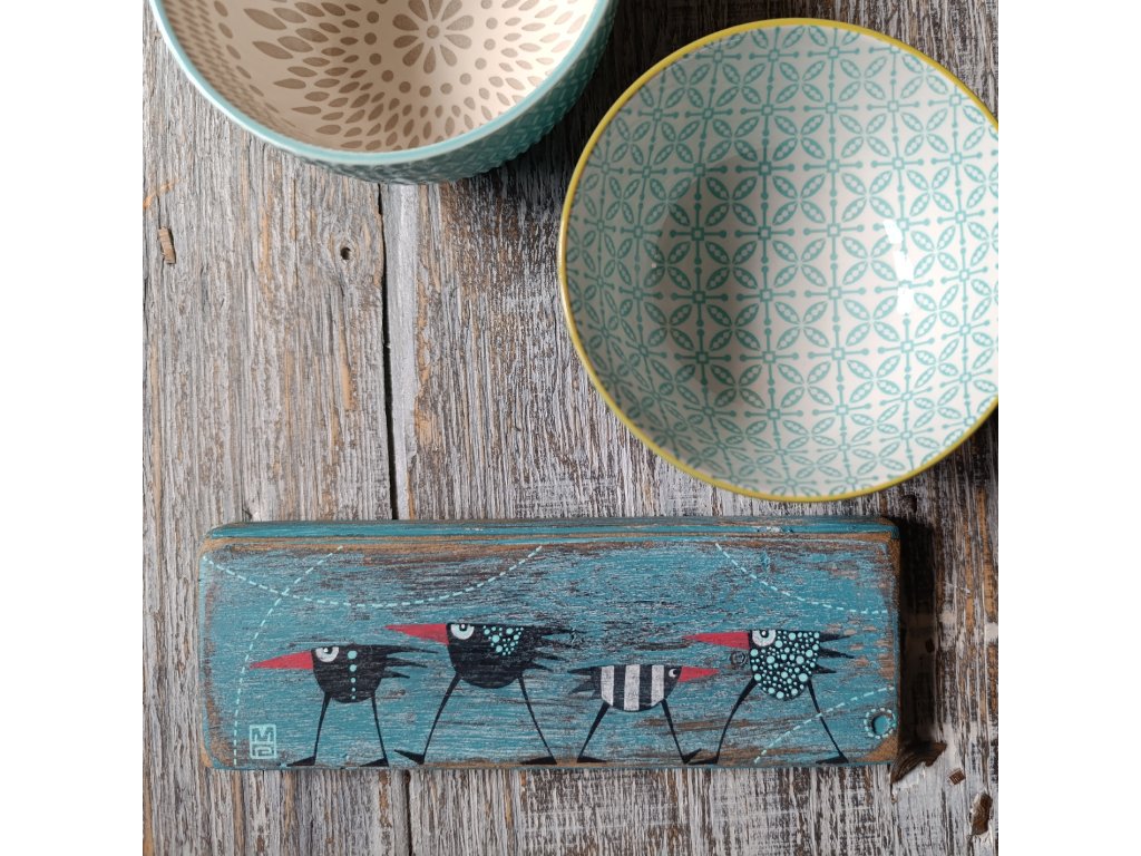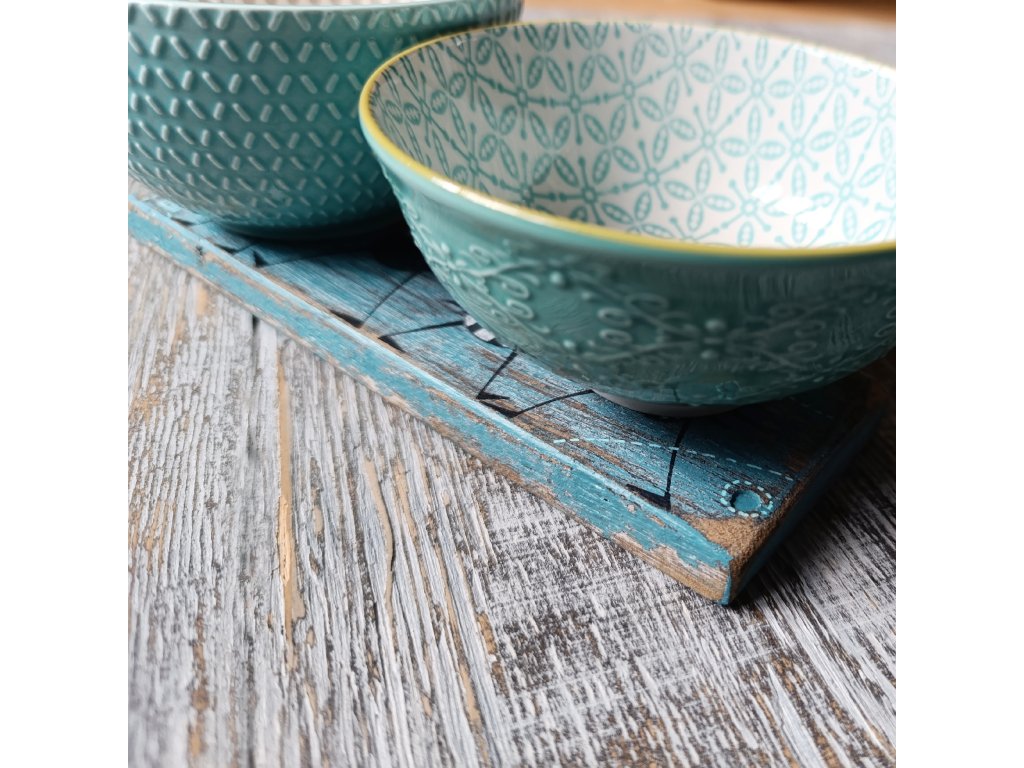 ošetřené proti dřevokaznému hmyzu, několikrát broušené, patinované, malované a znovu jemně obroušené a domalované pro jedinečný vzhled.