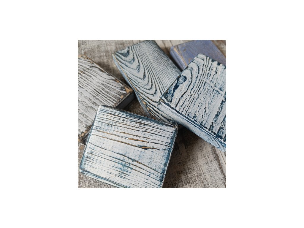 ošetřené proti dřevokaznému hmyzu, několikrát broušené, patinované, malované a znovu jemně obroušené a domalované pro jedinečný vzhled.