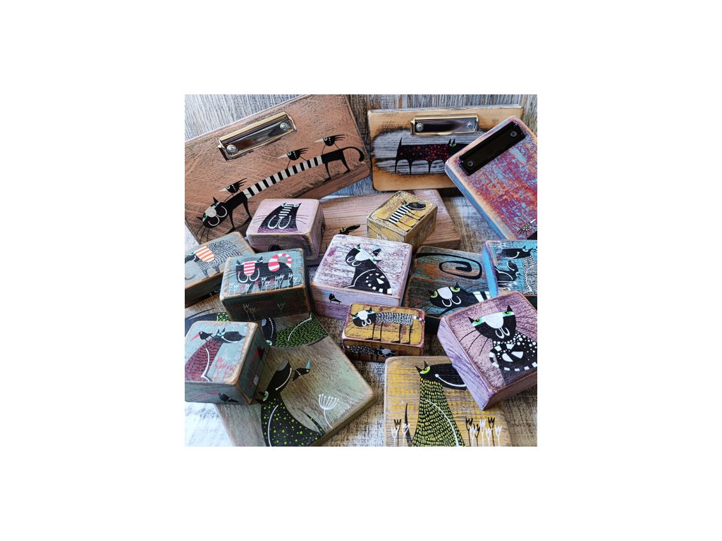 ošetřené proti dřevokaznému hmyzu, několikrát broušené, patinované, malované a znovu jemně obroušené a domalované pro jedinečný vzhled.