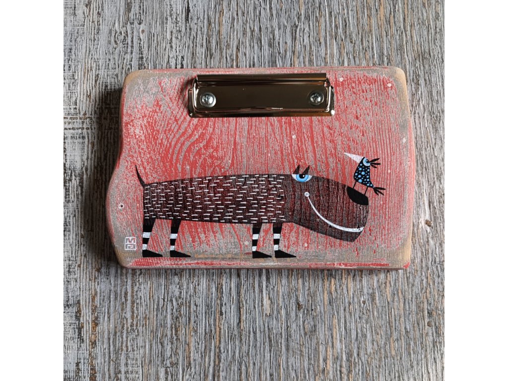 Slouží jako dekorace – ideální jako zápisníkovník na vzkazy, poznámky a dokumenty, které vám „pohlídá“, aby vám neulétly ulétly s prvním závanem větru. Pružinová svorka stříbrné nebo černé barvy. Ze zadní strany filcové kulaté podložky a též i závěs k zavěšení.